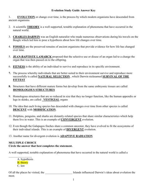 Download evolution study guide answer key Doc Google eBookstore